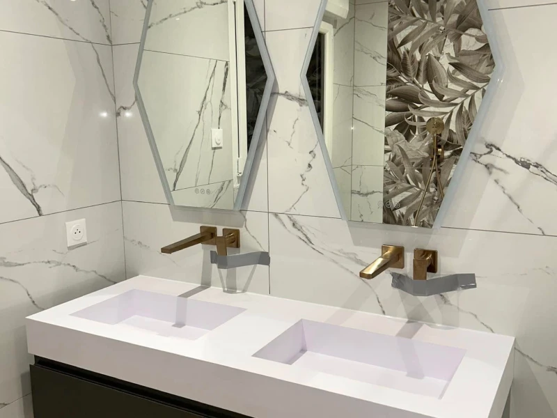 Oubliez les complications liées à la gestion de multiples artisans ainsi que le suivi chronophage des travaux. Notre équipe qualifiée coordonne l'ensemble des corps de métier avec précision pour vous livrer une salle de bains entièrement rénovée, alliant fonctionnalité et esthétique, dans le strict respect des délais convenus.